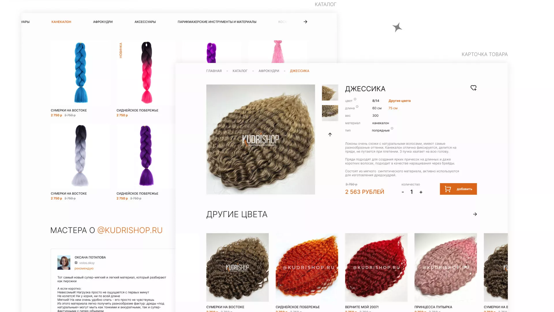 Создание интернет-магазина по продаже афрокудрей и других материалов для брендинга в Кунгуре. Целевая аудитория — молодые и современные девушки, желающие разнообразить свой образ.